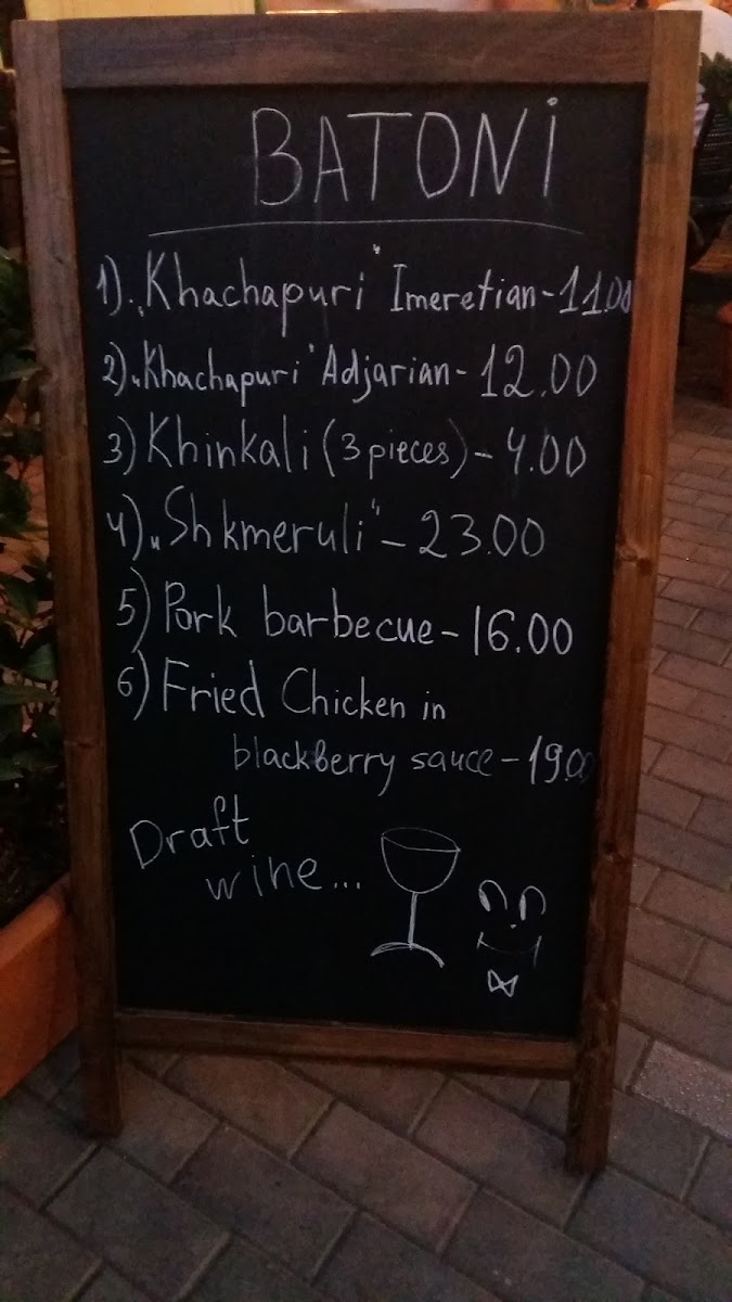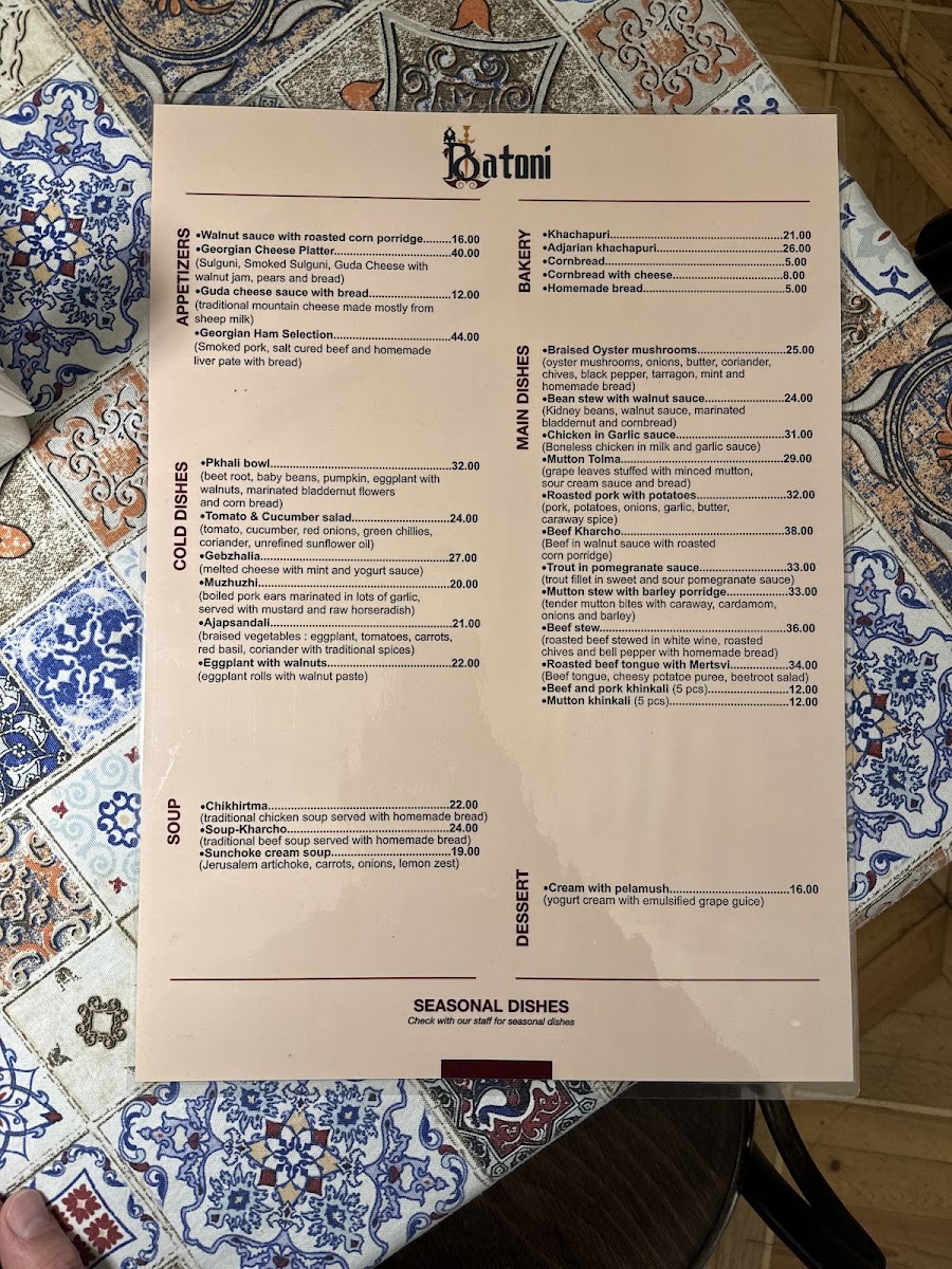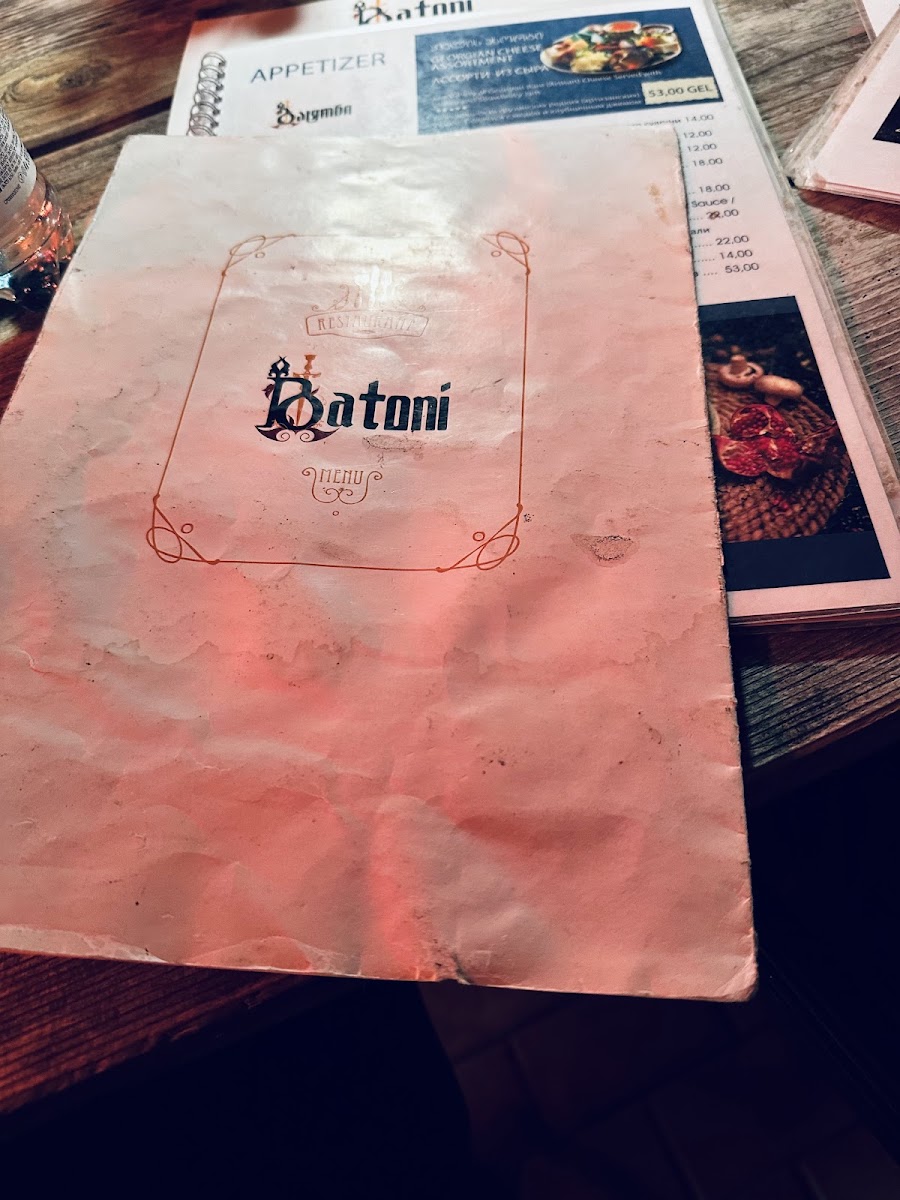 In conclusion, the menu at Batoni • ბატონი delivers a well-rounded and satisfying showcase of traditional Georgian flavors, balancing comfort and authenticity with thoughtful presentation. Signature staples like Khachapuri stand out with their rich, cheesy indulgence, while Khinkali offer a more rustic charm, each dumpling packed with juicy, flavorful fillings that reflect the heart of Georgian cuisine. The Ojhapuri adds a hearty, home-style touch, combining tender meat and potatoes in a way that feels both generous and deeply satisfying. Complementing these dishes, the Saperavi Rotwein provides a bold and robust pairing, enhancing the overall dining experience with its deep, full-bodied character. Altogether, the menu feels cohesive and carefully curated, making it clear that Batoni takes pride in preserving culinary tradition while ensuring each dish delivers both quality and memorable taste.